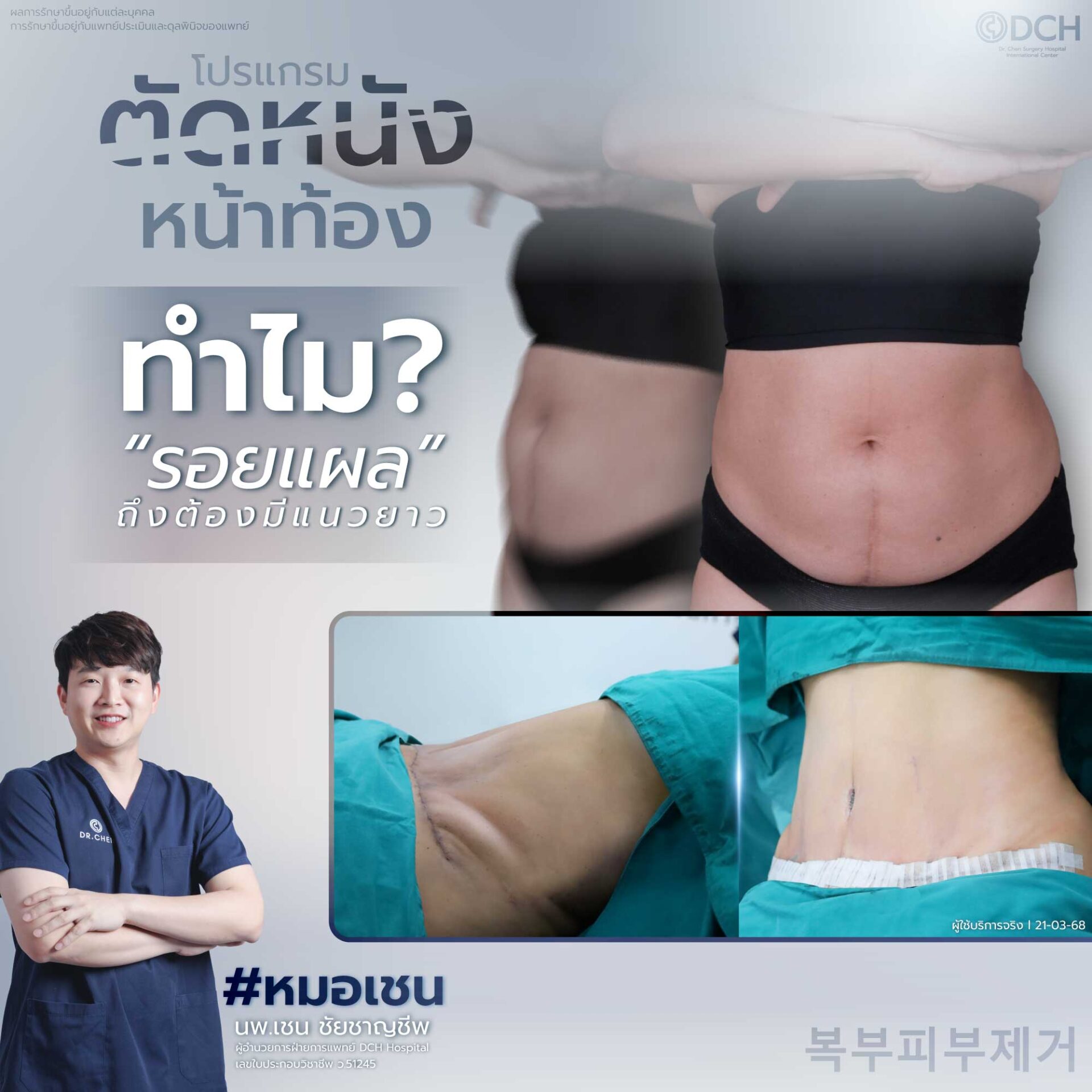 บทความนี้จะอธิบายอย่างตรงไปตรงมา ว่าการ ศัลยกรรมตัดหนังหน้าท้อง คืออะไร เหตุผลของรอยแผลเกิดจากอะไร และแนวทางที่ DCH Hospital ใช้ในการแก้ไขปัญหานี้อย่างเหมาะสมและปลอดภัย