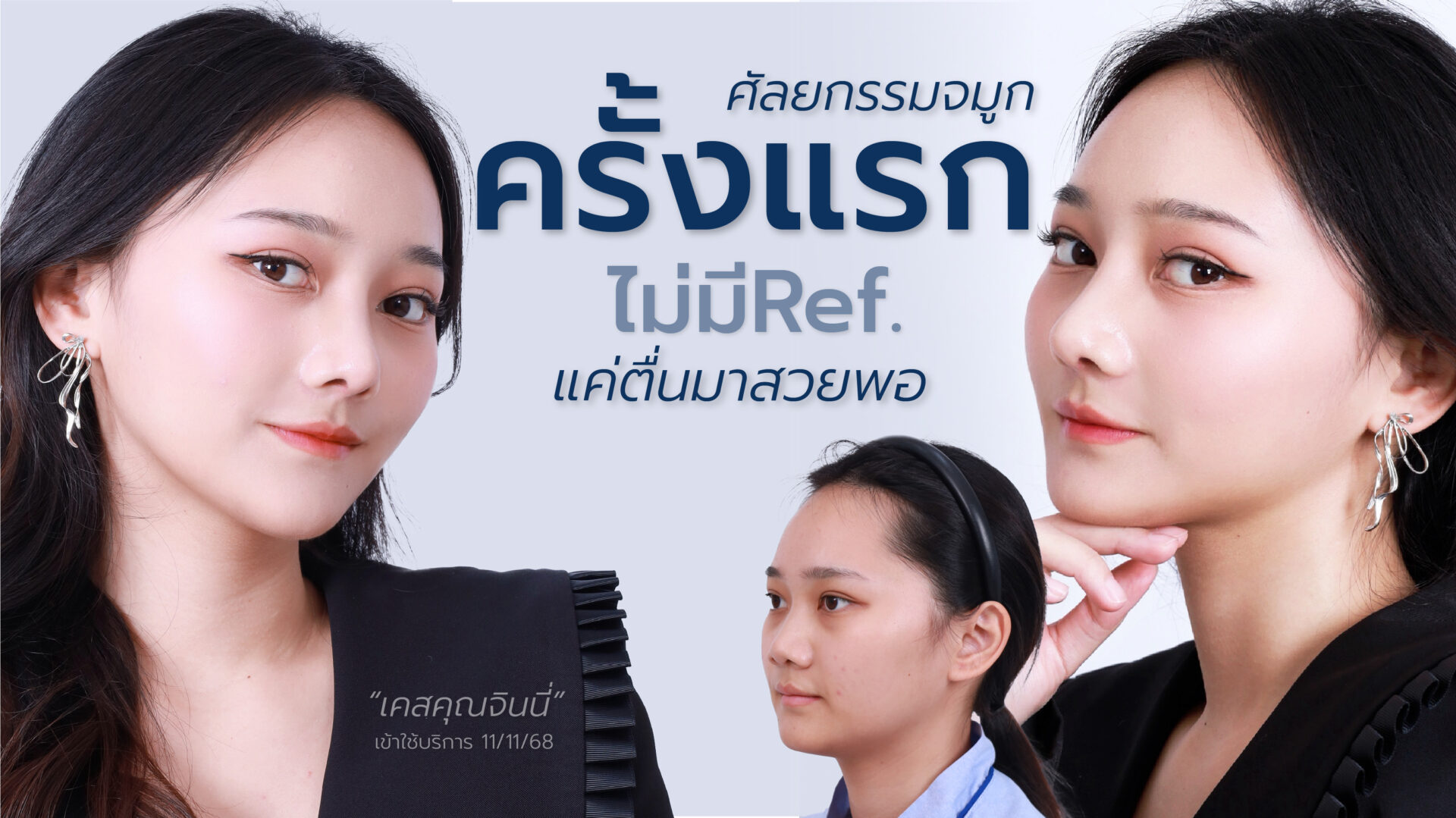 การทำ ศัลยกรรมจมูก ครั้งแรกของคุณจินนี่พิสูจน์ให้เห็นว่า ไม่จำเป็นต้องมี Ref. ก็สามารถได้ทรงที่สวยและเหมาะกับตัวเอง หากวางแผนดี เลือกเทคนิคที่เหมาะสม และดูแลตัวเองอย่างถูกต้อง