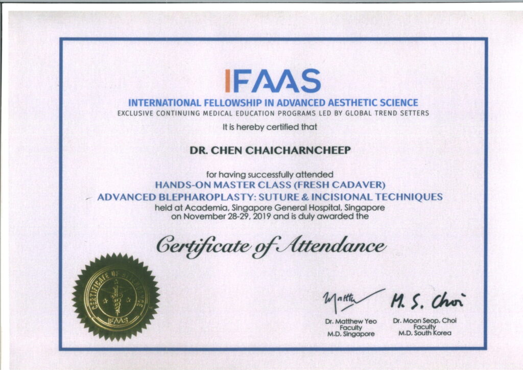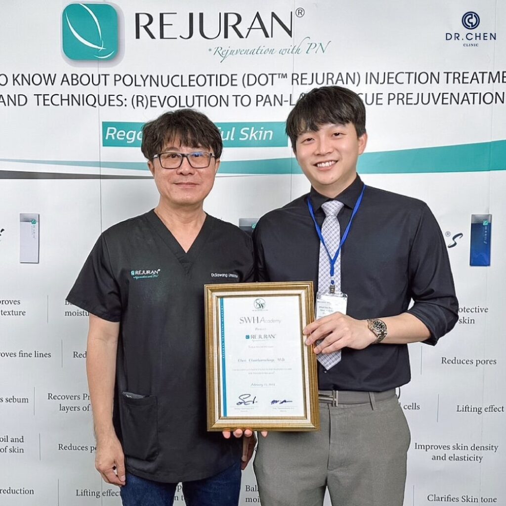 เพื่อยกระดับมาตรฐานการรักษาให้สอดคล้องกับแนวทางวิชาชีพและความปลอดภัยของผู้รับบริการ CHEN CHAICHARNCHEEP, M.D. (นพ. เชน ชัยชาญชีพ) ได้เข้ารับการอบรม ศึกษาดูงาน และร่วมประชุมวิชาการทั้งในประเทศและต่างประเทศอย่างต่อเนื่อง โดยมุ่งเน้นการพัฒนาความรู้เชิงลึกด้านศัลยกรรมตกแต่ง ศัลยกรรมความงาม และเทคโนโลยีทางการแพทย์ ภายใต้กรอบจริยธรรมและข้อกำหนดของแพทยสภา